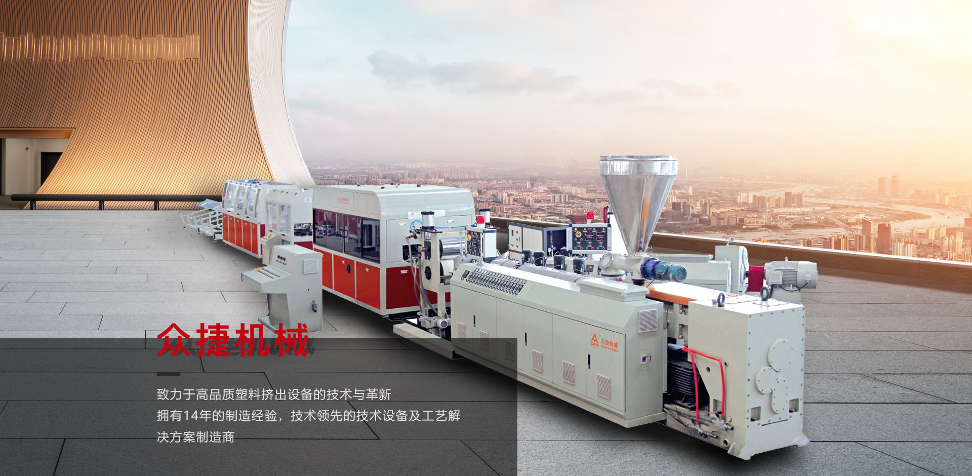 塑料擠出機制造的技術和市場領導者,眾捷機械為裝飾、異形材料、木塑、發(fā)泡板、PVC管材提供完美的解決方案。類塑料基礎設備領先水平,在創(chuàng)新與發(fā)展中已經(jīng)有14年歷史。